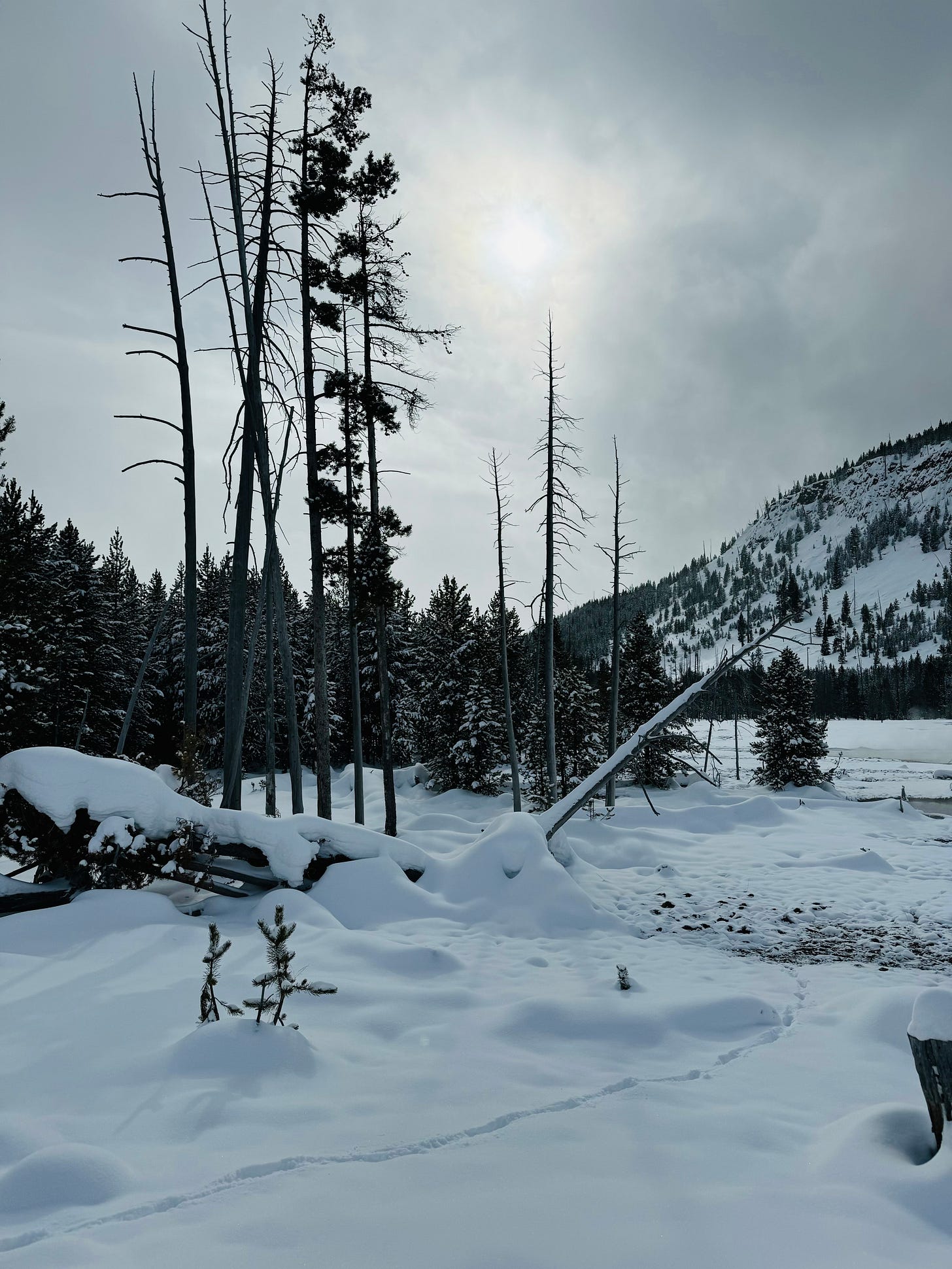 The front desk clerk asked if we wanted snow mobiles to take out and test in the woods. Excuse me? It would be a leisurely drive to get used to the snowmobiles we lied and said we’d driven before. The woods were packed with young men testing their immortality. I tried to copy them as much as I could. Death was not a fear, I only felt pushback if the move would cause an accident with a fiscal impact. There are over 400 miles of driving paths in the Yellowstone woods and I covered maybe 10% on Saturday. I thought I was ready for the National Park.