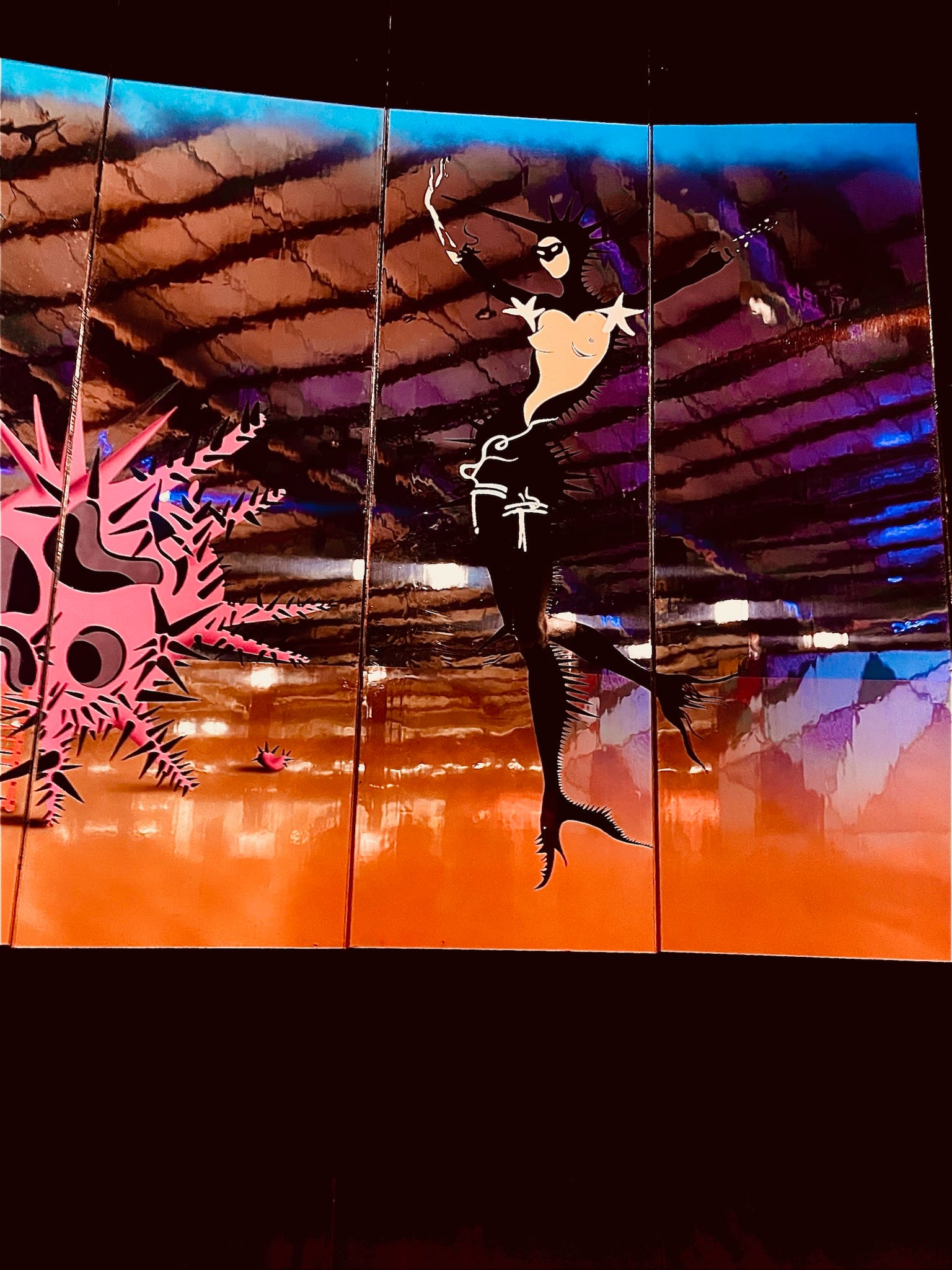Imagine standing within a work of art designed by David Hockney. It’s dimly lit and standing in the center, everything around you disappears. The walls are painted to resemble trees and then one of Strauss’ waltzes starts blasting through the speakers. I spun in a circle in that video and I was definitely dizzy when I walked out, but it was worth it. Like his paintings and Turandot, his pieces are understated. It was the most subtle piece of art in the entire exhibit, but to me it spoke the loudest. The other pieces existed within this carnival that was created for whimsical dreams, but when you step into the tree. nothing else around you exists.