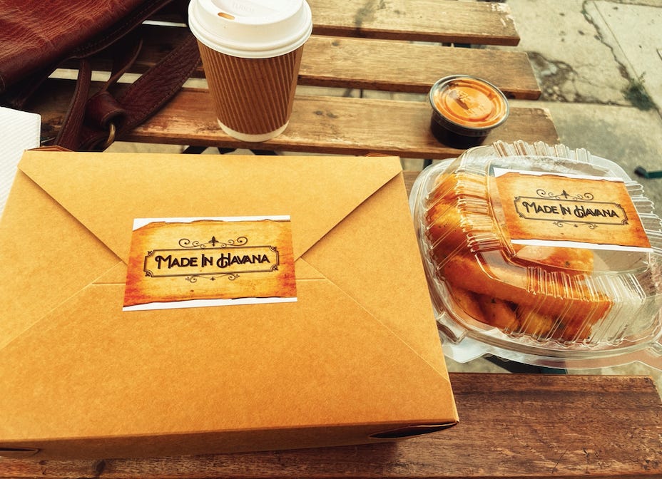 I started with the Cuban coffee with oat milk. I forgot how strong Cubans were. I liked it. I wish I had remembered my smokes from the car. There was no one else there, I would have gotten away with it today.