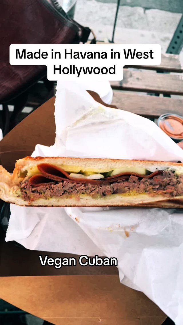 Like all great happy endings, this film ends with the opening of a lucrative restaurant in Los Angeles. Every time I finish this movie I want a grilled cheese sandwich. After watching it last night, I wanted a Cuban. More accurately, I wanted a vegan Cuban sandwich to materialize because I’m not a fan of ham. Naturally, Google found the vegan Cuban sandwich in West Hollywood.