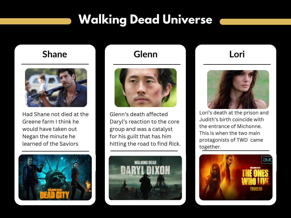 Negan’s character arc began with his interactions with Carl. Had Lori been alive, that connection never would have happened. Everything with Rick’s family led to his spin-off show. A season one character that didn’t make it directly affected a later spin-off.